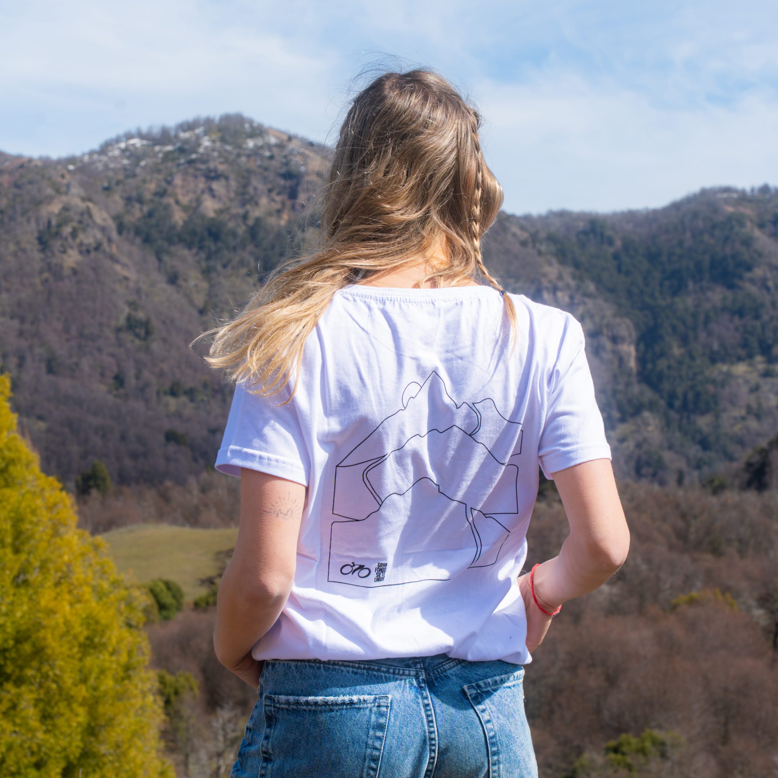 Esta remera 100% algodón combina comodidad y suavidad con un diseño simple inspirado en los paisajes del recorrido.